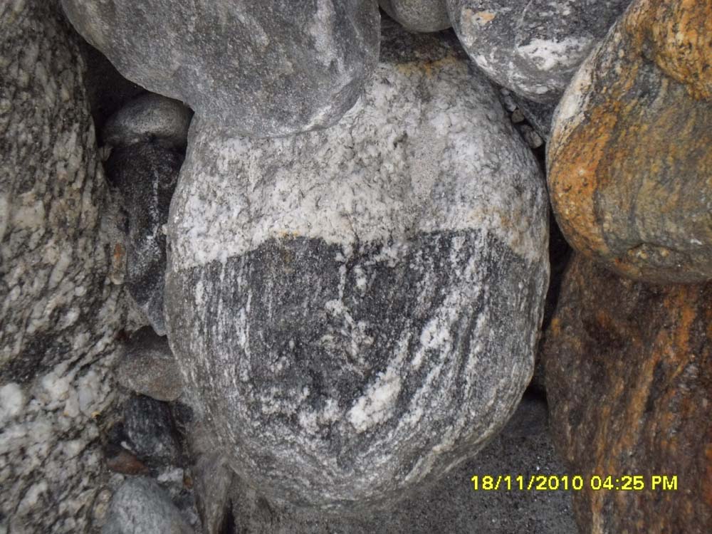 यह पत्थर आधा काला और आधा सफेद है। केवल ऊपरी सतह ही ऐसी नहीं है, अगर इसे फोडेंगे तो अन्दर से भी काला और सफेद ही निकलेगा। क्या कारण है इसका?